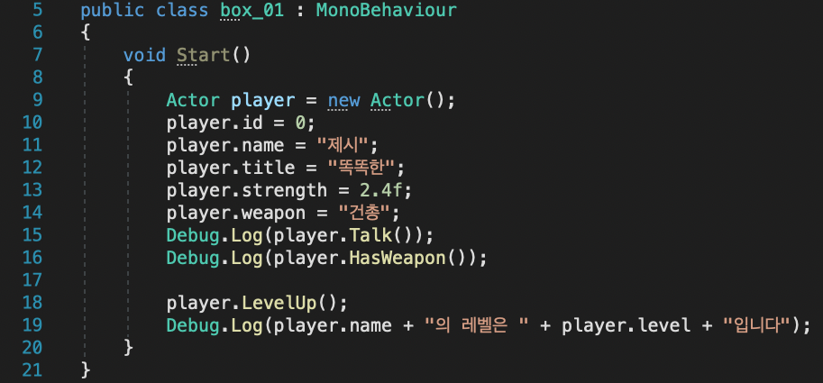 Actor 클래스를 box_01 클래스에서 하나의 변수로 만들었습니다.