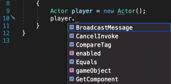 Actor 클래스는 public 접근자를 가지고 있어서 어디에서나 변수로 사용할 수 있습니다