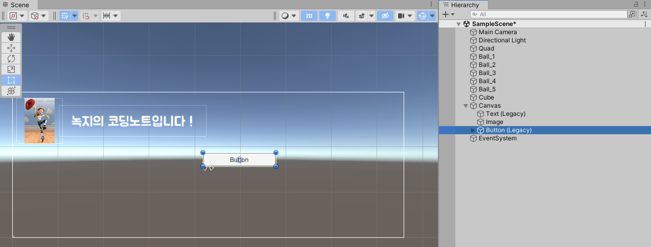 🔻 Canvas에 Button을 추가한 모습입니다