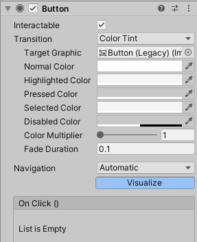 | Disabled Color | 버튼이 비활성화 되었을 때 (Interactable 비활성화 시) |