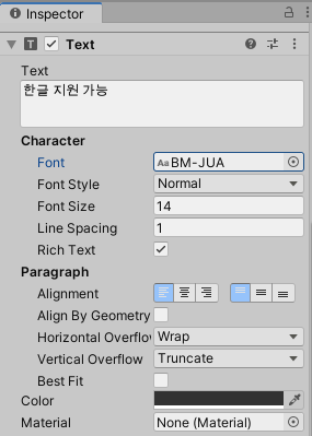 🔻 Canvas에 Text가 디폴트로 귀속되어 추가됩니다 (한글 지원 O)