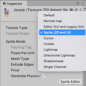 🔻 Texture Type을 Sprite로 설정해야 UI 적용이 가능합니다