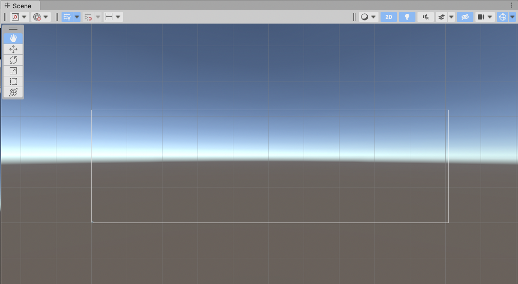 🔻 Canvas를 추가하면 흰 색 직사각형이 씬 창에 나타납니다. 2D를 활성화시켜 화면을 정면에서 바라볼 수 있습니다