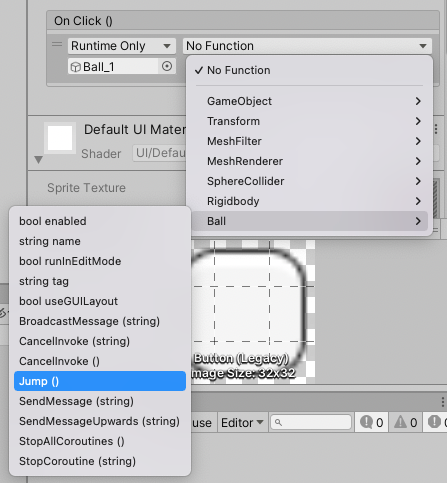 🔻 Ball 스크립트 | No Function에 Ball_1 의 스크립트 중에 반응할 Function을 설정해야합니다