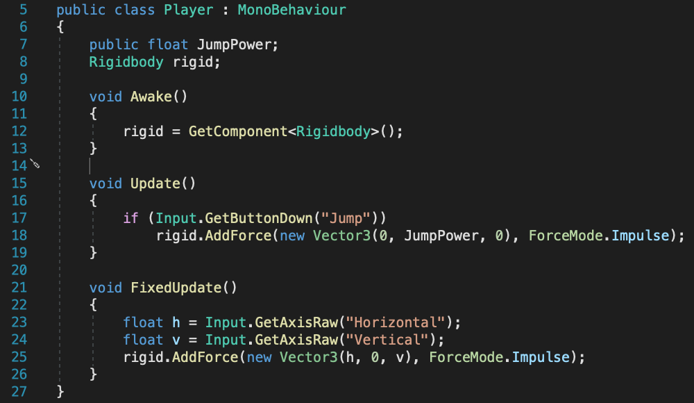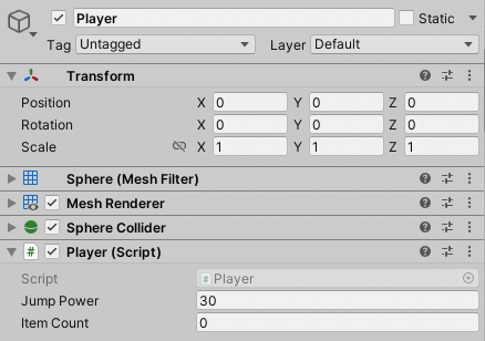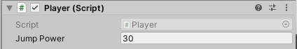 - Player의 Inspector창에서 JumpPower을 조절할 수 있도록 public 선언