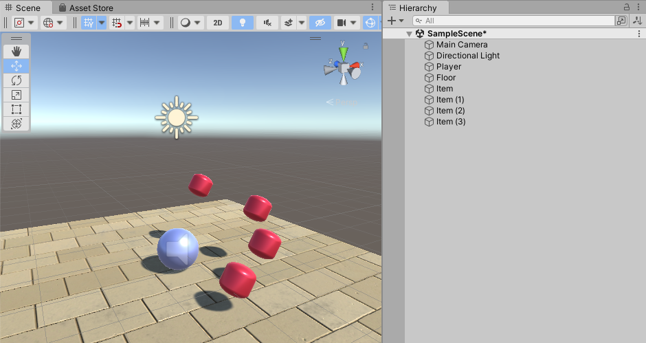 - Player와 아이템이 닿으면 아이템이 사라짐