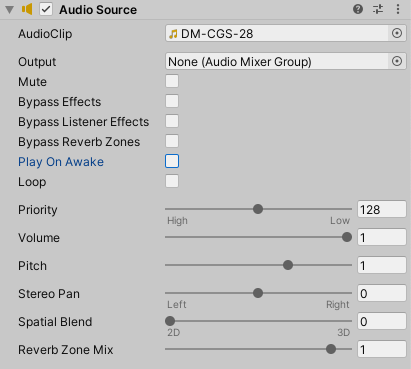 - Play On Awake 비활성화 해제 (플레이시 바로 재생X)