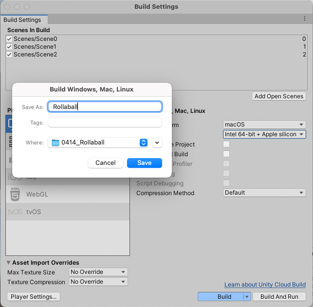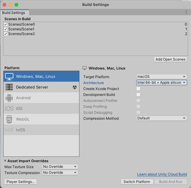 🔻 Build Setting에서 플랫폼을 정하고 Build 시킵니다