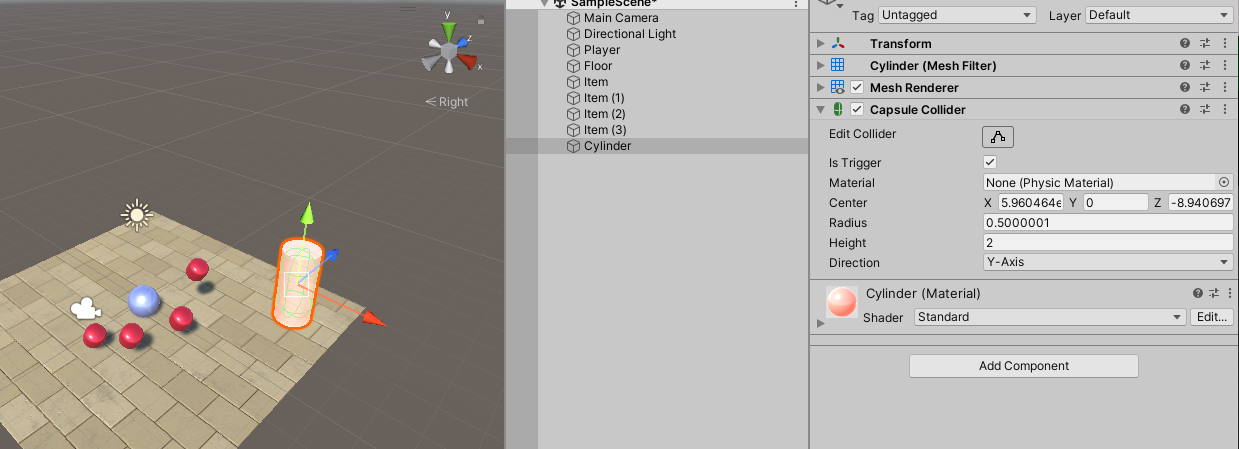 🔻 Collider 컴포넌트 추가 / Is Trigger 활성화