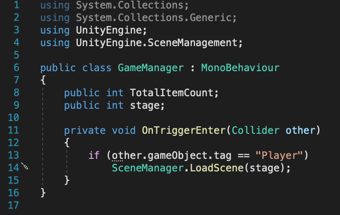 ✏️ 아이템을 모두 먹으면 다음 씬으로 넘어가는 부분
