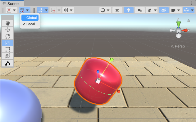 Global로 변경하여 회전축이 Scene World 중심이 되도록 해줍니다