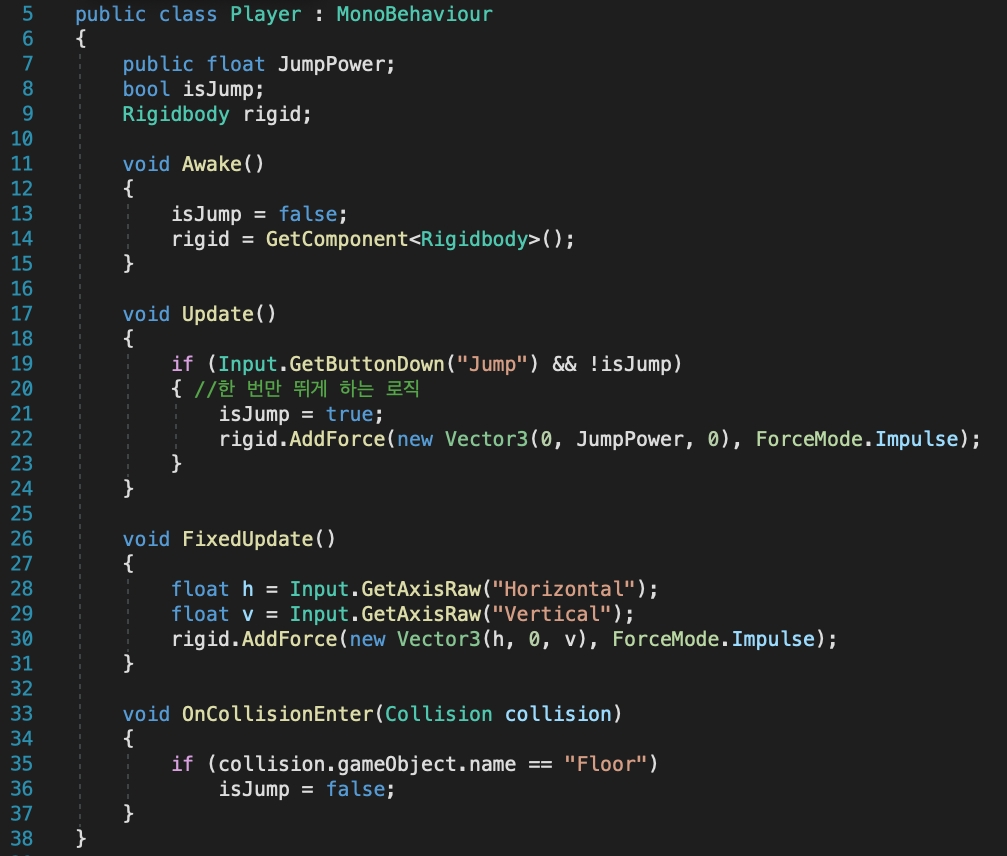 - Floor 이름의 오브젝트를 만나면, isJump는 false
