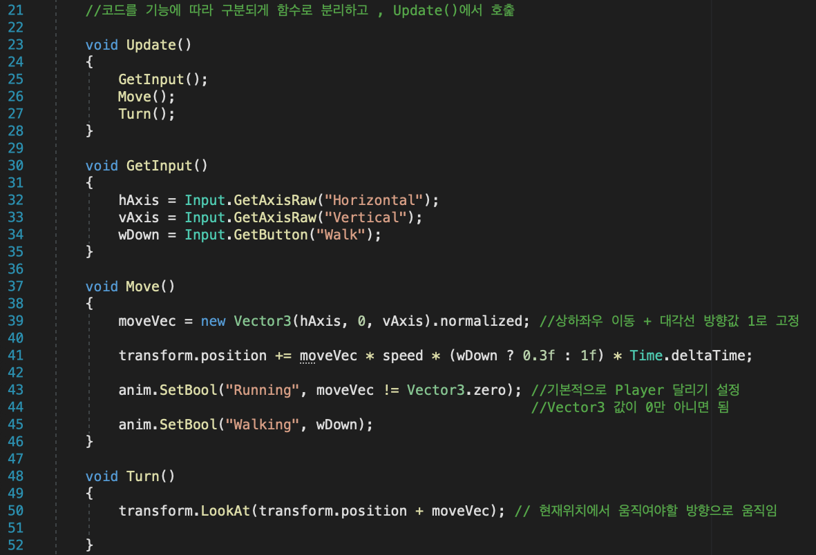 Move() : Player 이동값 설정
