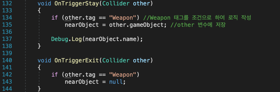 - Item 스크립트의 아이템 정보를 nearObject가 가지고 옴