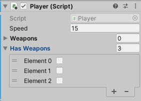 🔻 무기를 하나씩 먹을 때마다 Has Weapons가 순서대로 체크됨