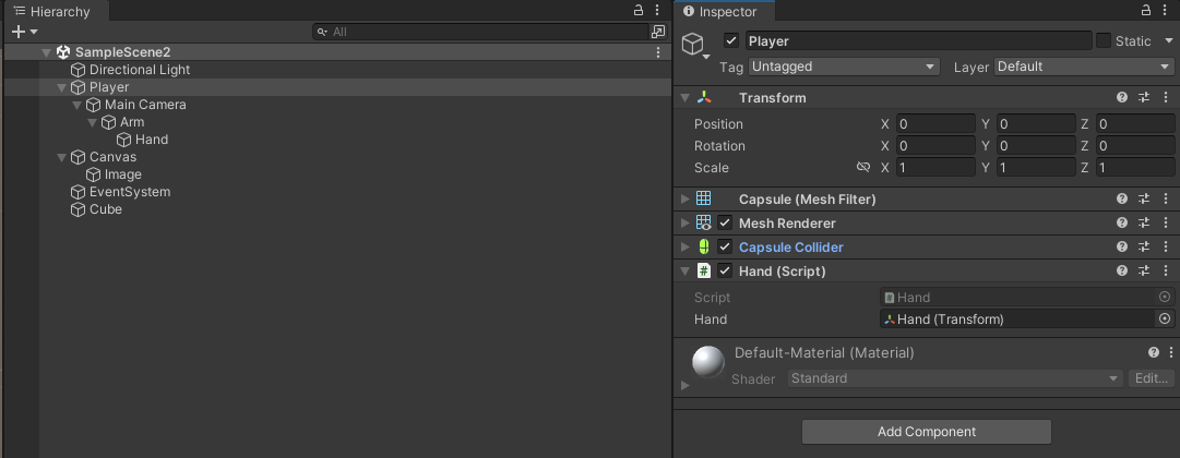 Player시점에 카메라가 위치함 , 앞에있는 큐브를 집는 로직
