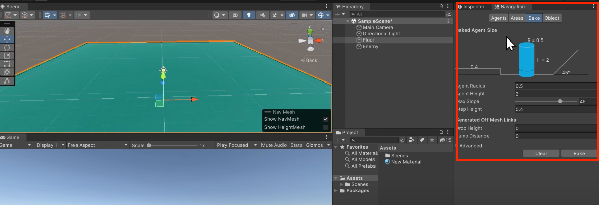 NavMeshAgent가 할당된 Enemy가 목표 target으로 이동한다