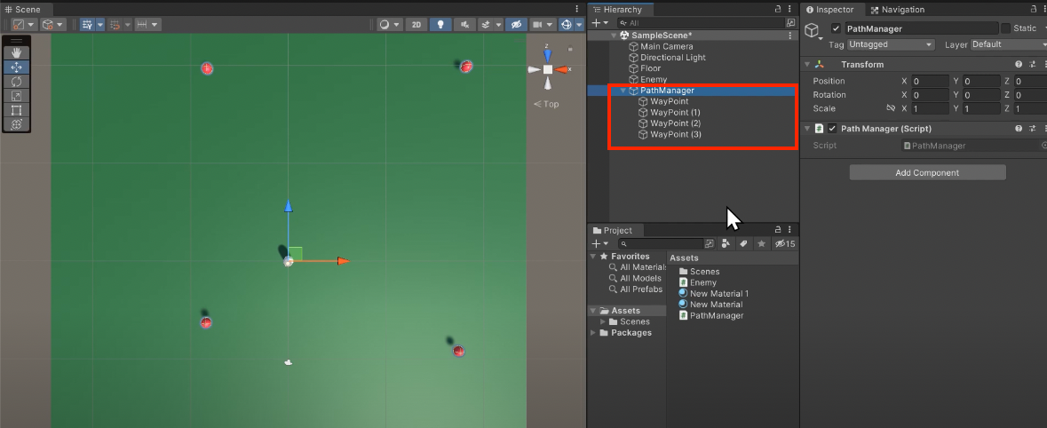 Enemy가 해당 정보를 알고 있는 것도 좋지만, 관리하기 번거롭기 때문에 독립적으로 PathManager을 생성하여 관리하는 것이 좋다