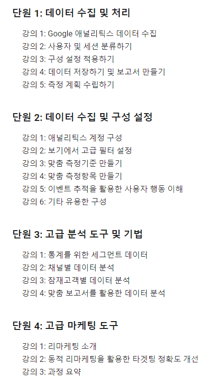 왼쪽부터 구글 애널리틱스 초급/ 고급과정