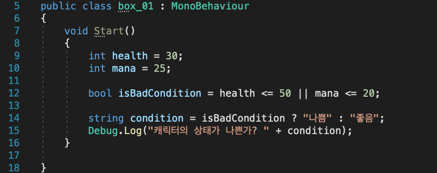 string condition = isBadCondition ? "나쁨" : "좋음" ;