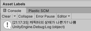 Debug.Log("캐릭터의 상태가 나쁜가? " + isBadCondition);