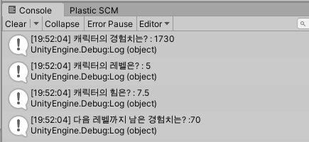 Debug.Log("캐릭터는 만렙인가?" + isFullLevel);